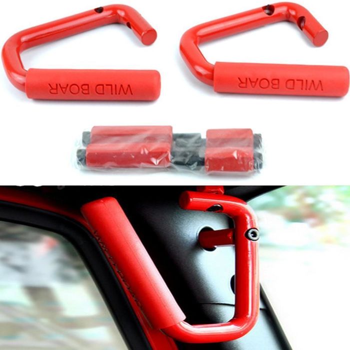 סט ידיות אחיזה מתכת אדומות רנגלר JK עם 2 דלתות